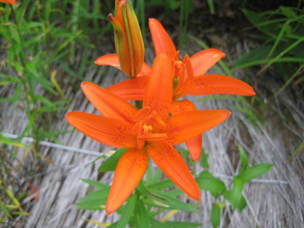 大陸に分布する変種のチョウセンヒメユリは蕾に綿毛があり、葉や花が大きめです。