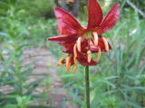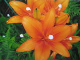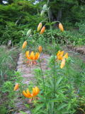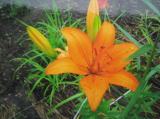 アジアティック ハイブリッドの品種にヒメユリを交配すると普通小輪になりますが、これは大輪で遠目で目立つ柿色です。