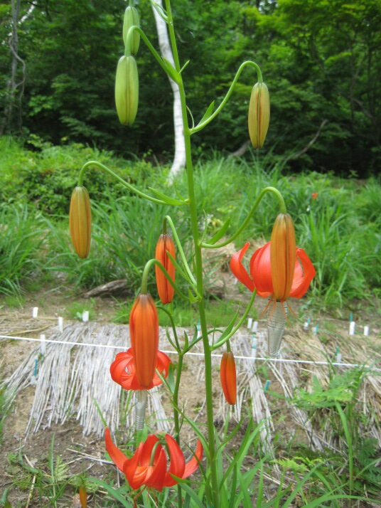 品種改良のページで述べた松の光×L.pumilumの選抜個体のようなA.Hybの品種づくりと、スゲユリを交配親に使った良い香りのするA.Hybの品種づくりは、一昨年、昨年と二年連続夏の異常高温で、花は咲いて交配は出来るのですが、茎葉は枯れてしまい種子がとれず苦戦しています。事例は少ないのですが傾向をまとめておきます。